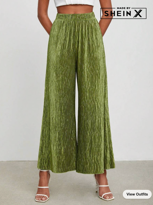 BELANGE HANDMADE X SHEIN - Solid Plisse Wide Leg Pants - Available on SHEIN.COM Only