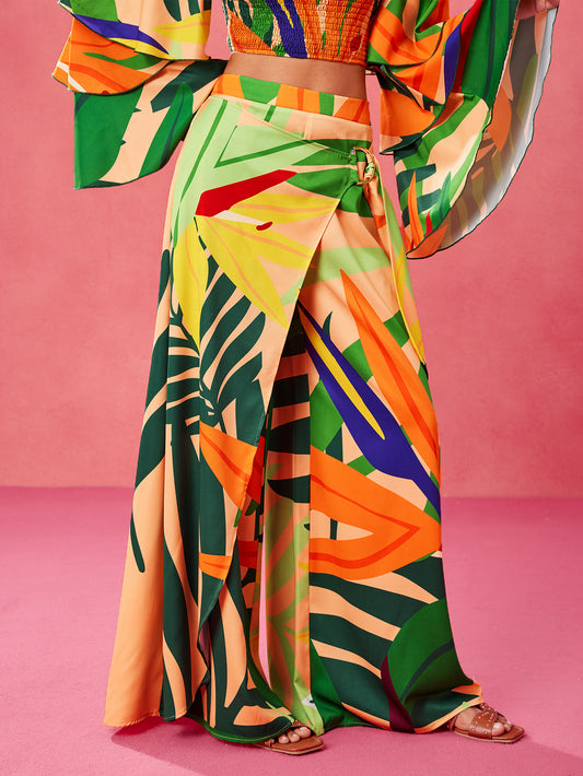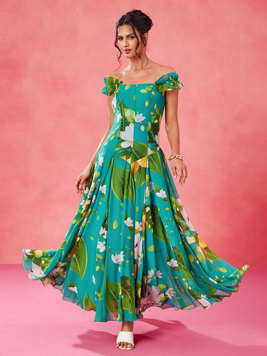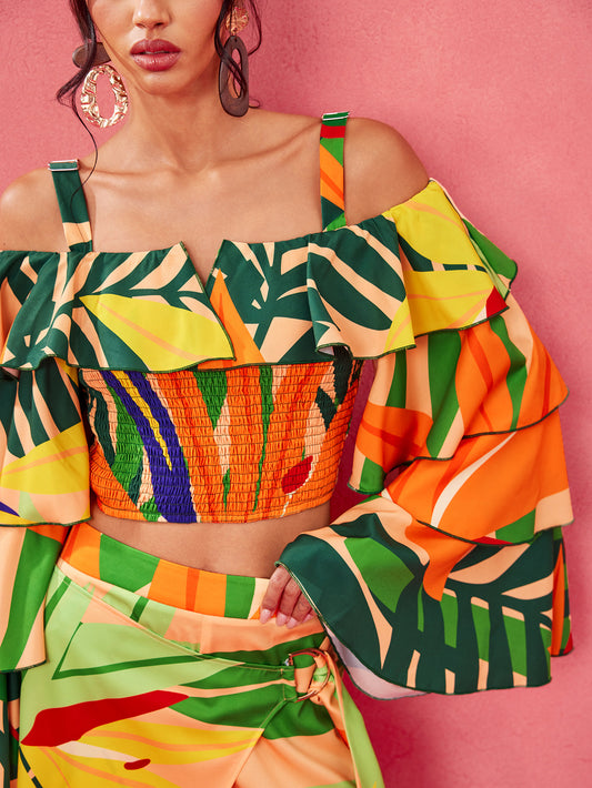 Sweet Tropical Burst- BELANGE HANDMADE x SHEIN - Boho Bohemian Position Print Ruffle Tiered Sleeves Off Shoulder Smocking Shirred Top- Available on SHEIN.COM Only