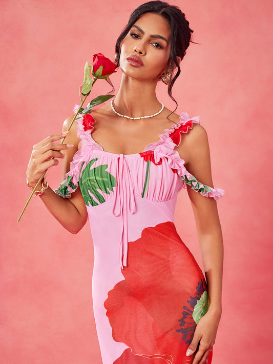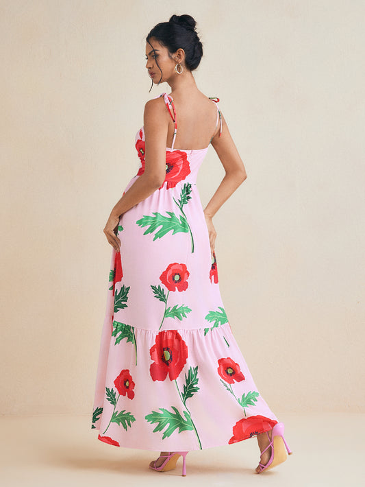 Sweet Poppy - BELANGE HANDMADE x SHEIN - Pink Floral Tie-Strap Ruffle Sundress – Spring Date, Festival & Prom Look - Available on SHEIN.COM Only