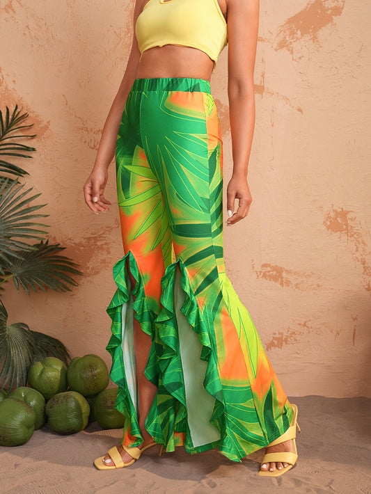 BELANGE HANDMADE X SHEIN - Elastic Waist Split Hem Ruffle Edge Flare Pants- Available on SHEIN.COM Only