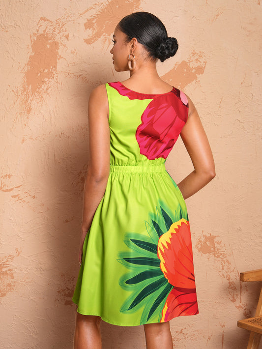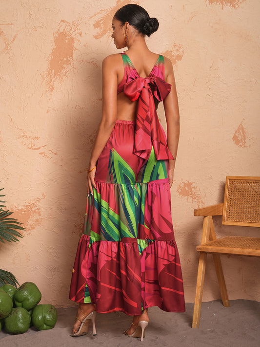 BELANGE HANDMADE x SHEIN - Bow Tie Strap Elastic Waist Print Dress- Available on SHEIN.COM Only