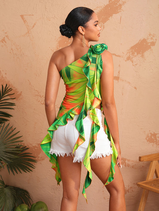 BELANGE HANDMADE x SHEIN - One Shoulder Slim Fit Top With Ruffle Hem- Available on SHEIN.COM Only