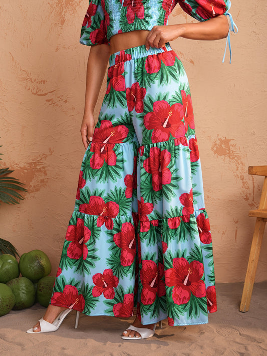 BELANGE HANDMADE X SHEIN - Elastic Waist Wide Leg Printed Pants- Available on SHEIN.COM Only